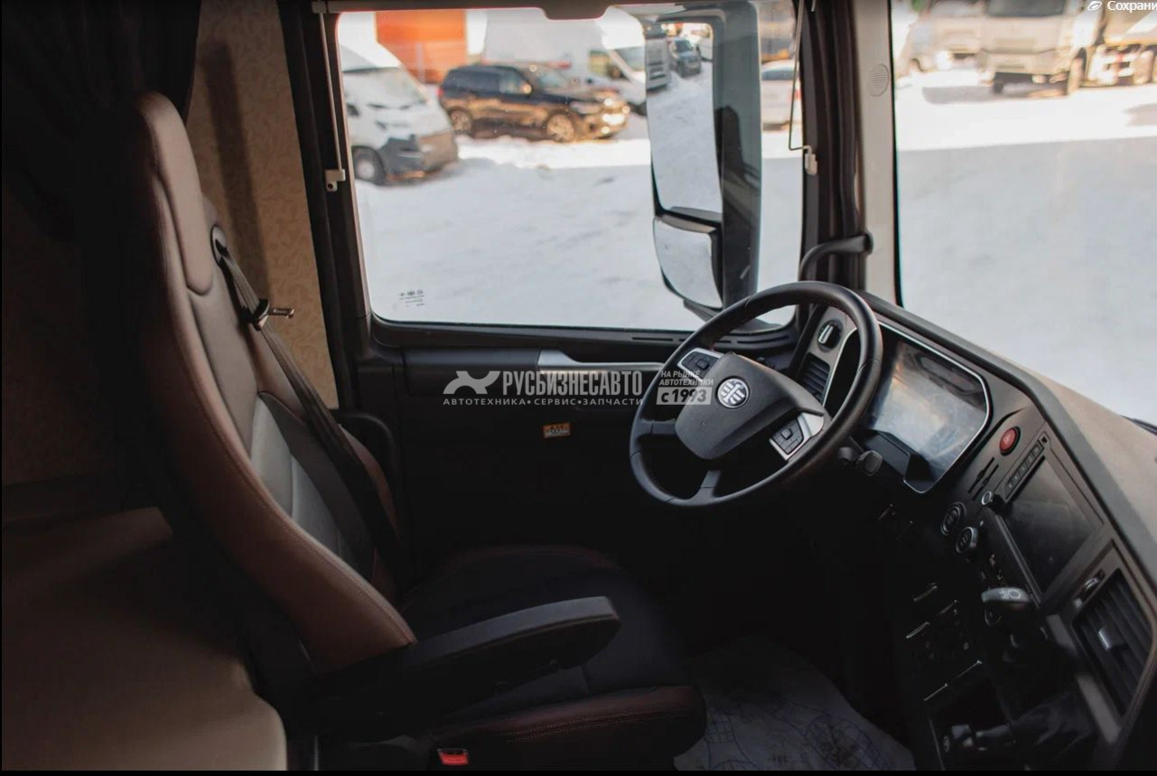 - Высокая кабина J7 с плоским полом, зеркалами заднего вида с электроприводом и электрообогревом, четырехточечная пневматическая подвеска кабины. - Двигатель собственной разработки компании FAW, 550 л.с., система Common Rail с электронным управлением. - Автоматическая коробка ZF Traxon ZF12TX2621TD с ретардером. 12 передач вперёд и 2 назад. - Электронная приборная панель, 8-дюймовый сенсорный автомобильный терминал, совместимый с Beidou, электрические стеклоподъемники, кондиционер. - Grammer - комфортабельное сиденье для водителя с пневмоподвеской, подлокотниками и функциями вентиляции и обогрева. - Рулевой механизм TRW. - Тормозная система WABCO. - Задняя пневматическая 4-х подушечная подвеска. - Полная масса 25000 кг. - ССУ HYVA/JOST 1270 мм, нагрузка на ССУ 15560 кг. - Благодаря 3-й подъёмной оси снижается средний расход топлива, улучшается управляемость и сохраняется ресурс покрышек.