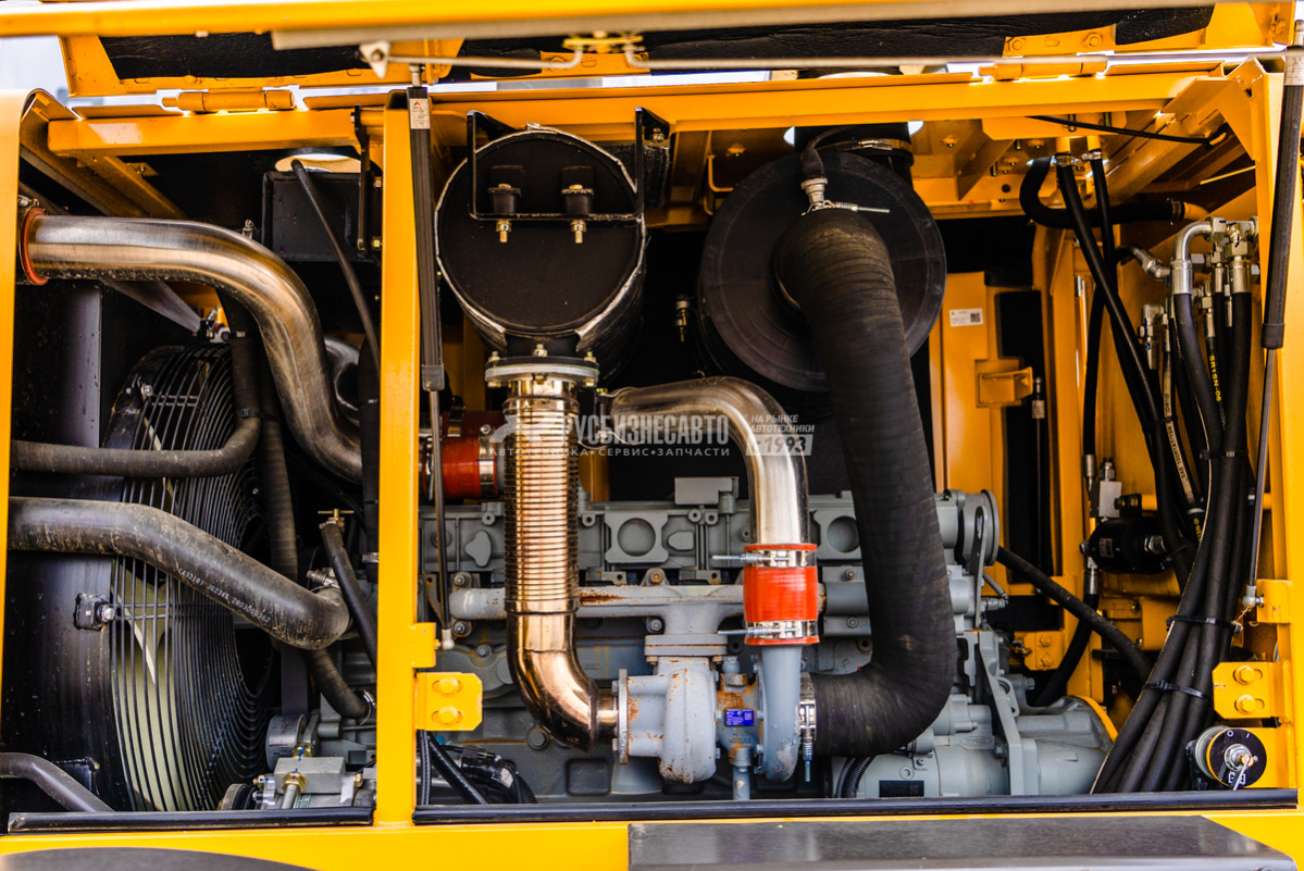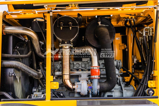 - Двигатель Dalian Deutz BF6M1013ECP с насос-форсунками. Номинальная мощность 224 л.с. Три режима работы, соответствующие трём кривым мощности. Циклонный префильтр Donaldson (США).