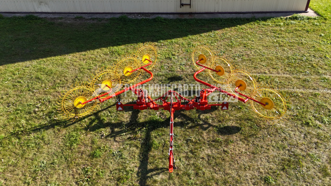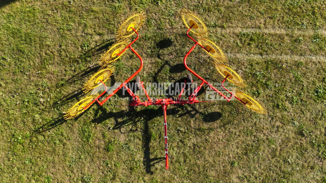 Грабли-ворошилка валкообразователь предназначены для сгребанияпровяленной травы из прокосов в валки и ворошения её в прокосах.Используются для уборки сеяных трав, а также трав естественных сенокосовурожайностью свыше 10 ц/га на равнинах при влажности массы от 25%до 80%. Толщина зуба сгребания составляет 8 мм в диаметре.